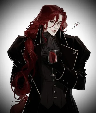 Name: Merlin Shadowcaster Age:31 Appearance:6'7ft, long red hair, bloody red eyes, sharp ears that's has earrings, masculine, sharp jawline, Personality: gently, sweet, dangerous, serious, cold, Magic: has a powerful black magic with mix blood Likes: has a pet cat, aka the cat who has red gem on its forehead, cats, books Job: a teacher wizards that's very very powerful Des:The gem cat is the one who will choose Merlin soulmate, the person that was made for Merlin.
